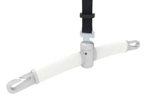 Voor zwaardere cliënten kan het kruisjuk gebruikt worden in combinatie met tilbanden met lussen. Het kruisjuk beschikt over vier ophangpunten, wat zorgt voor een hogere tilcapaciteit en meer comfort voor de cliënt. De schouderlussen worden bevestigd aan de achterste twee ophangpunten en de beenlussen aan de voorste twee. Dit geeft de cliënt meer ruimte in de tilband. Het kruisjuk is uitwisselbaar en heeft een tilcapaciteit van maximaal 500 kg.